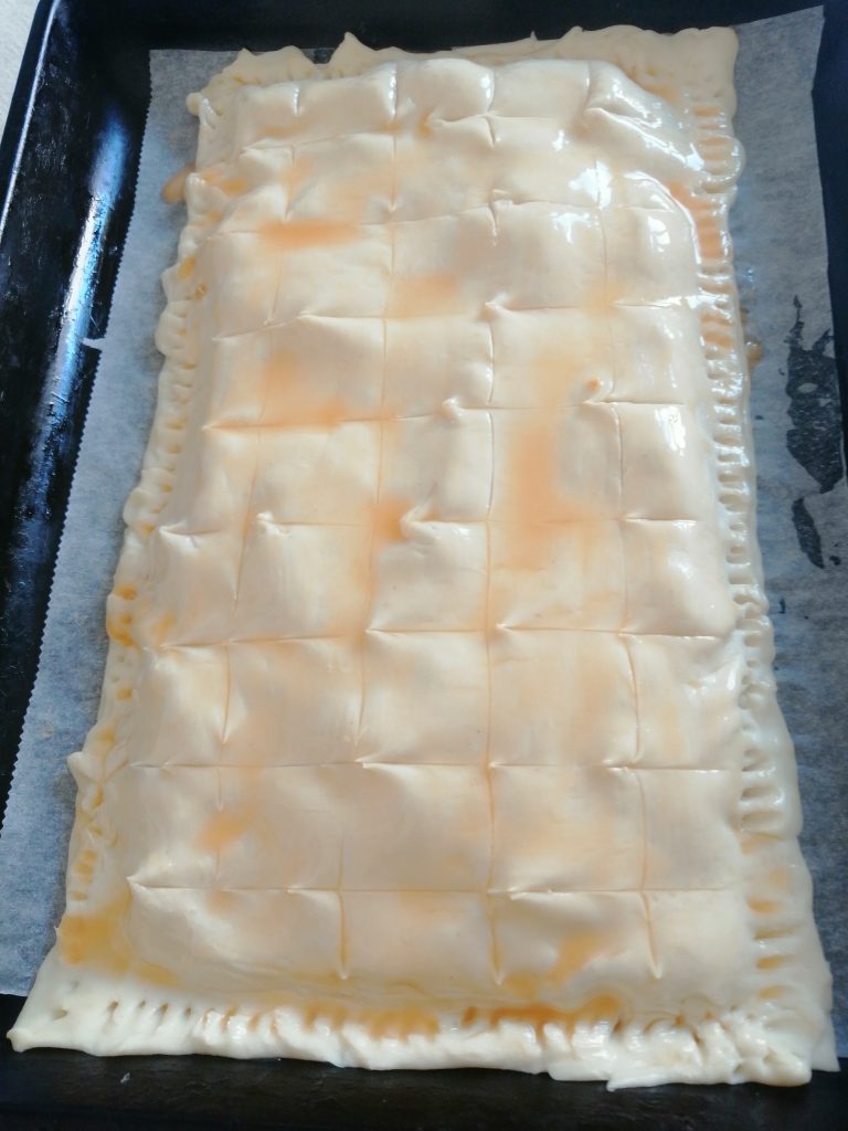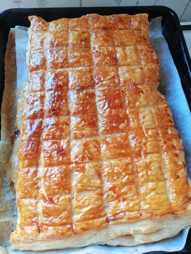 - 500г готового листкового тіста (перепис домашнього ось тут: https://www.praktychnakukhnia.com/franczuzki-tistka/ )