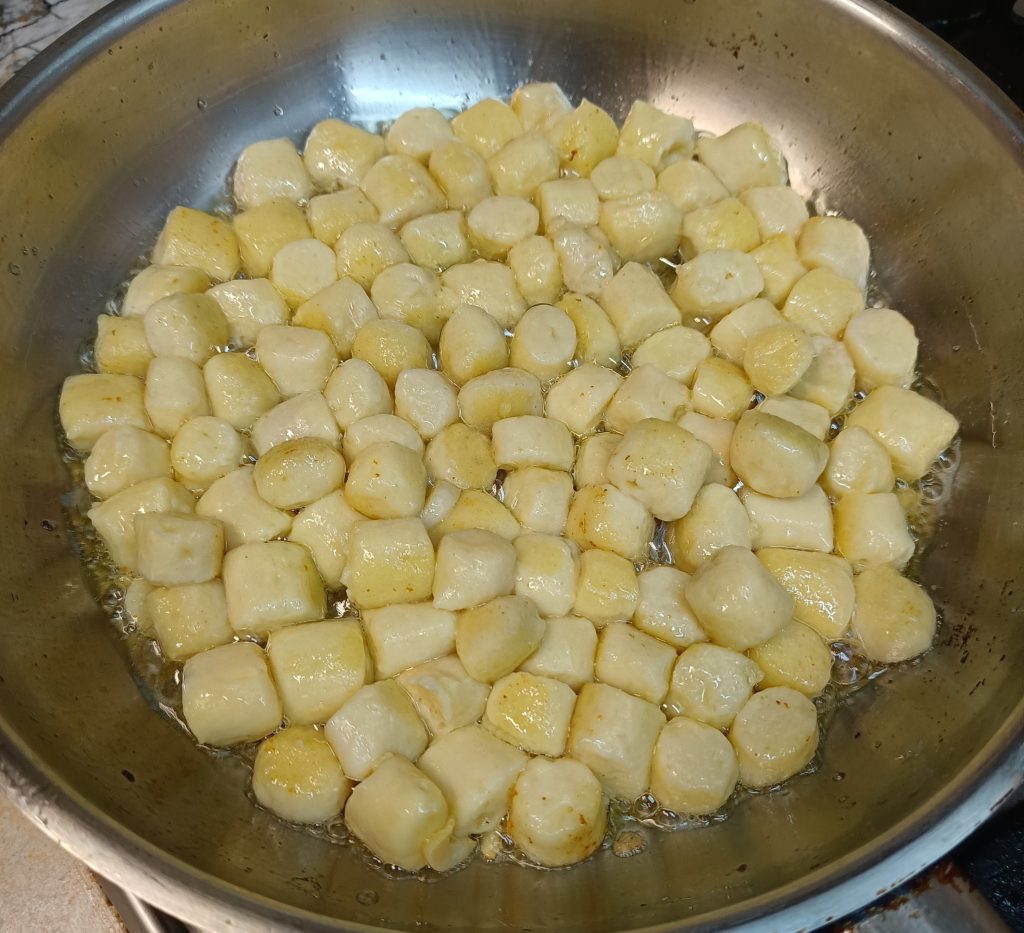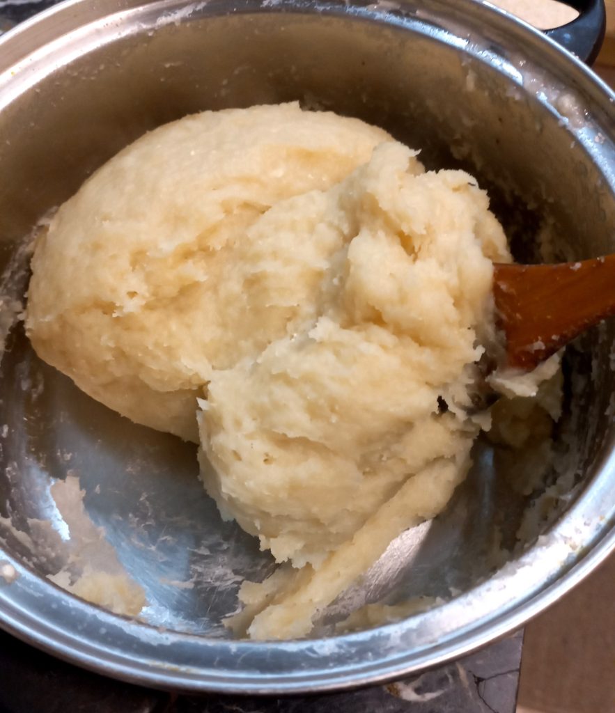Основна ідея цієї страви полягає в тому, що замість картопляного тіста використовують заварне “pâte à choux” – те саме, з якого роблять еклери або профітролі.