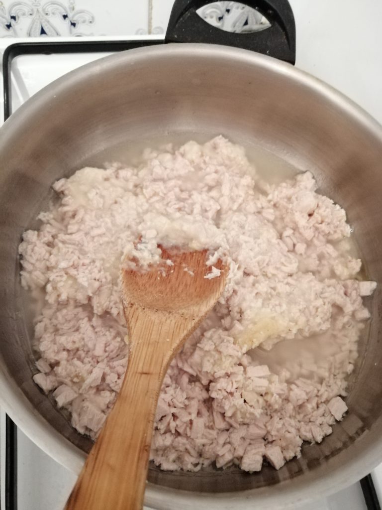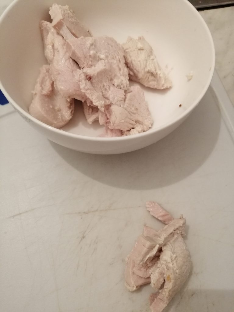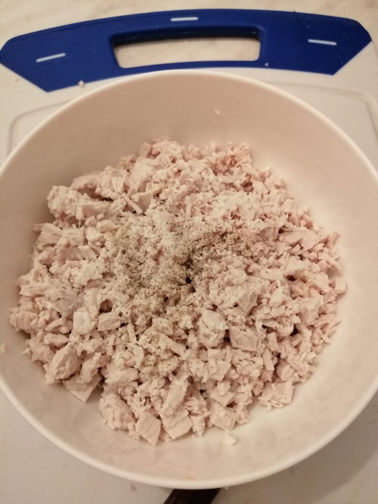- М’ясо з росолу дрібно нарізати, або змолоти.