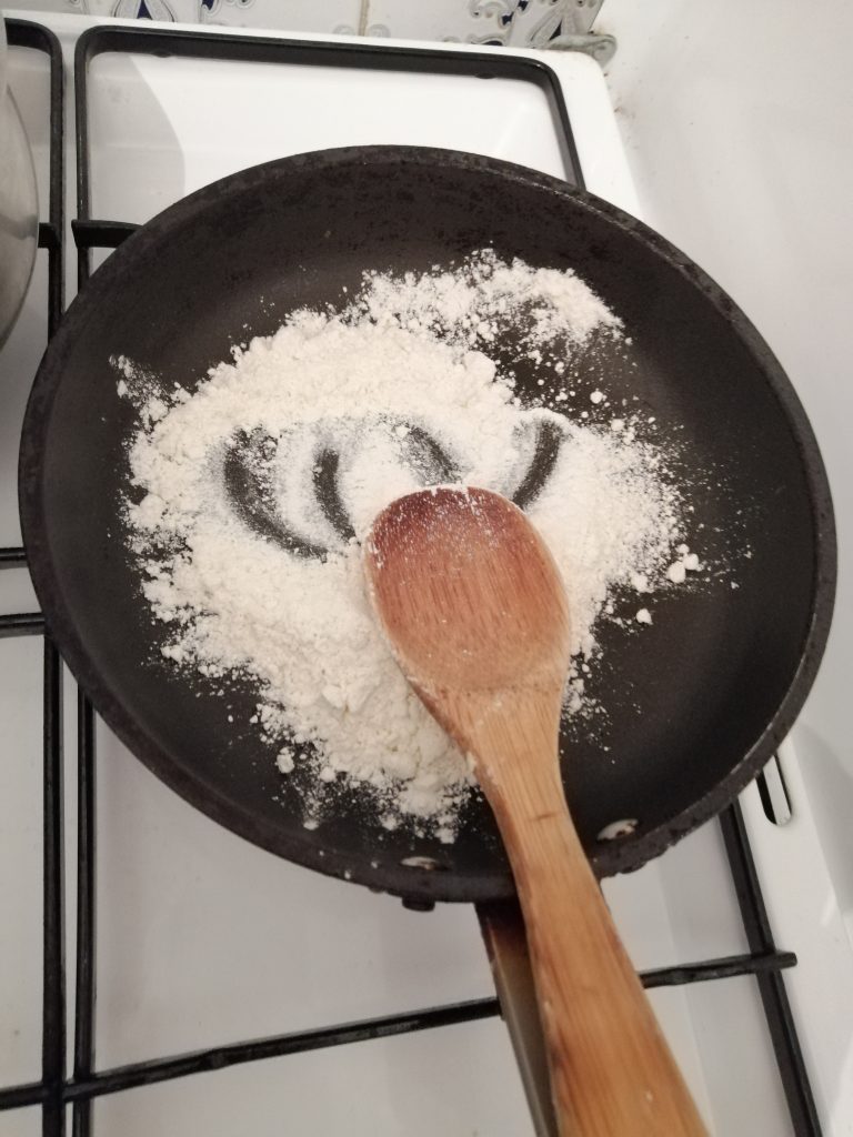 - Зробити запражку: муки легко підсмажити, розвести росолом.