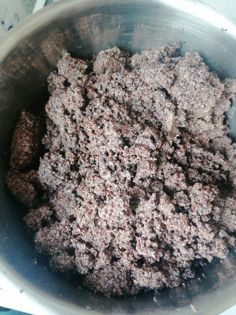 1. Мак запарити, викласти в чашу блендера й добре втерти.