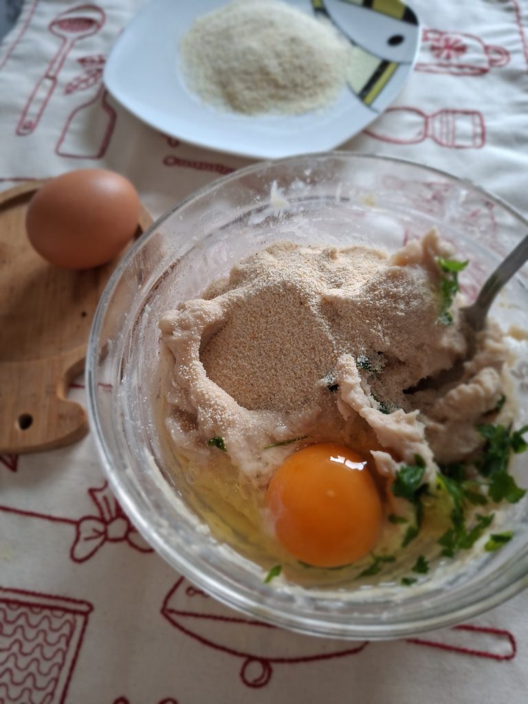 - Додати яйця, сухарі та приправи (можна додати пасеровану цибулю і моркву, або петрушку зелену і часник хто любить).