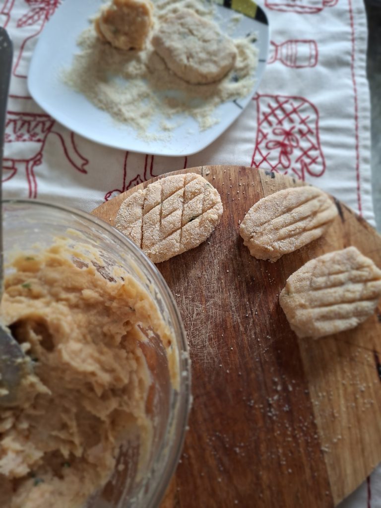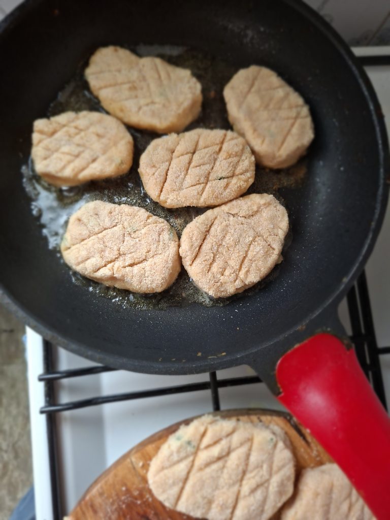 - Зробити овальні сіканці, обмачати в сухарях, підсмажити на олії.
