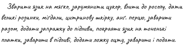 Язик у “сірому соусі” вважався делікатесом завдяки поєднанню солодких і кислих смаків. Цю страву подавали під час урочистих бенкетів, і вона належала до найвишуканіших на столах заможних людей.
